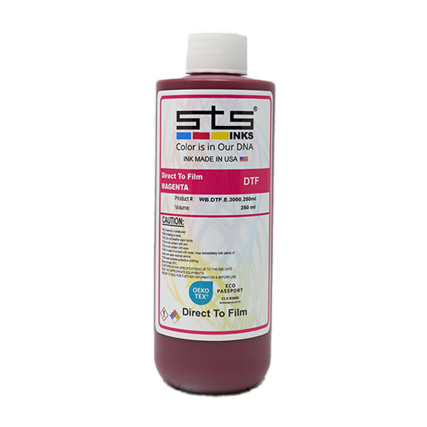 Manufactured in the USA with Safety and Consistency in Every Batch, STS Inks’ direct-to-film transfer inks are formulated for the Epson printheads and Epson 6-8 color desktop printers. The inks have a 1-year shelf life and carry the STS printhead warranty. Just follow our registration requirements. ICC profiles are also available for your printer.