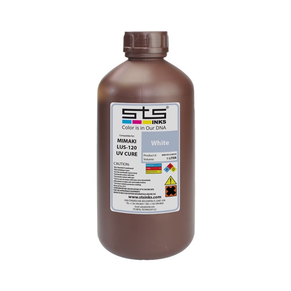 STS Mimaki LUS-120 UV Ink provides instant drying, very low odor level, perfect jetability, no clogging and/or deflection, super sharp print quality, resists fading when exposed to outdoor conditions, water resistant, outdoor durability without lamination, wide color gamut, vivid vibrant colors, compatibility and excellent adhesion on most self-supporting flexible and pressure sensitive vinyls.