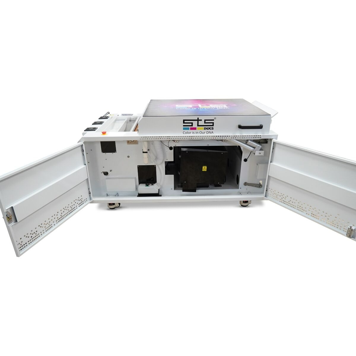 The STS Inks XPD-924D 24-inch DTF Printer boasts staggered dual AccuFine HD printheads for enhanced productivity, delivering high-quality transfers with smooth gradations and fine lines. As the fastest dual-head printer on the market, it maintains true quality and consistency in every print. Our new XPD-924 features a built-in white ink circulation system that operates continuously, ensuring a seamless flow of ink. This advanced feature reduces the likelihood and the need for maintenance, resulting in increased uptime and greater profitability for our customers!